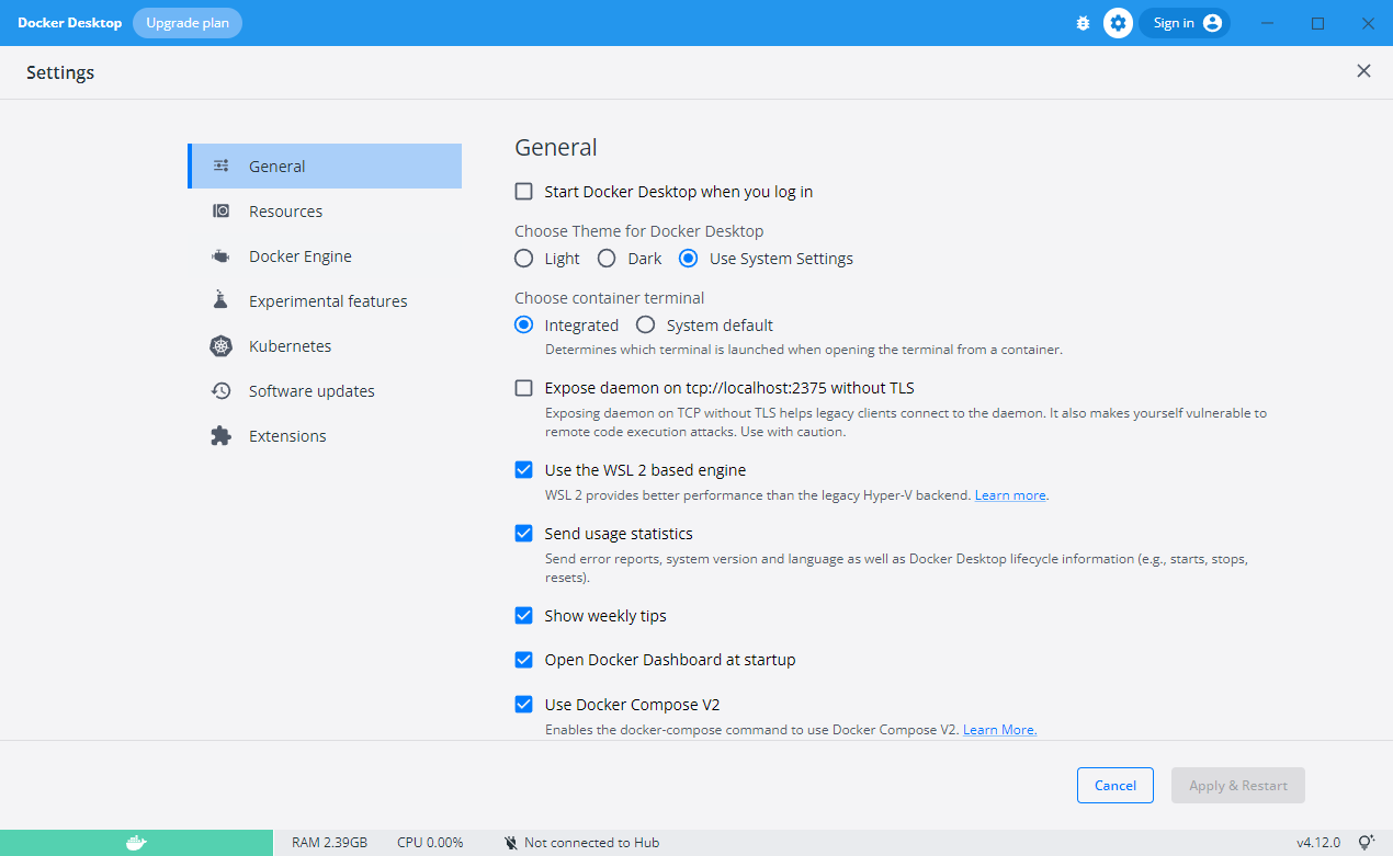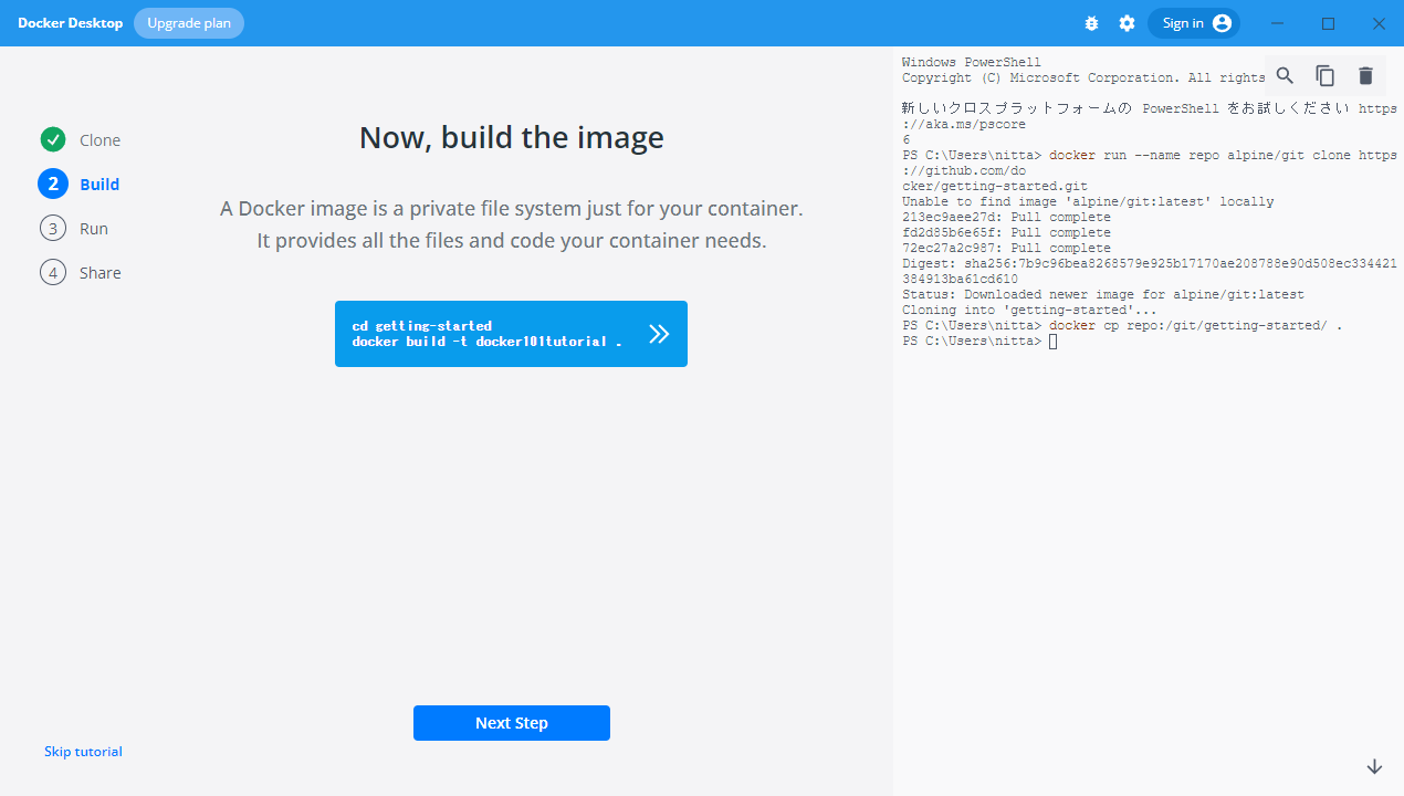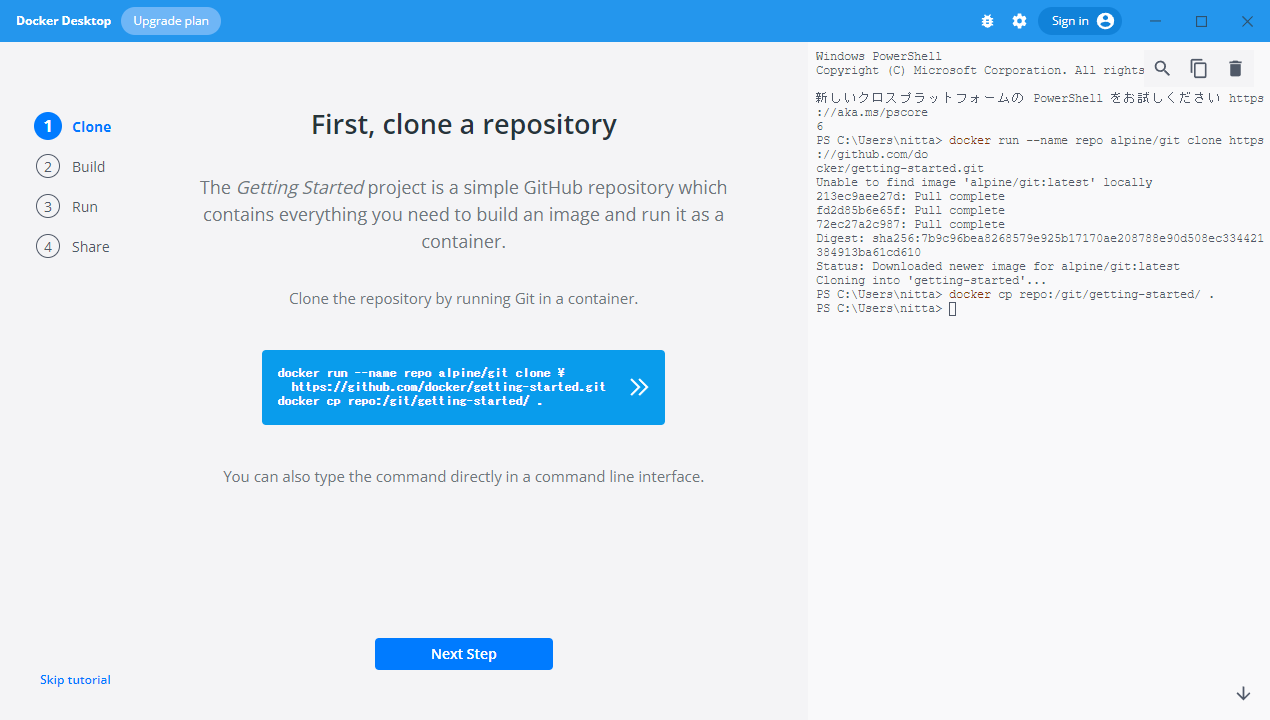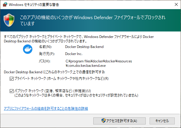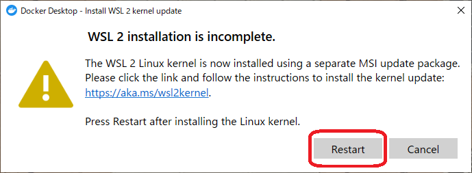 「 enable WSL と install a glibc-based distribution (Ubuntu or Debian) を行う」と記述されているが、docker のインストール時にWLS 2 はインストールされるのでいらないようだ。 ([Oct/09/2022 注記] https://learn.microsoft.com/en-us/windows/wsl/install によれば wsl --install コマンドで wslを導入できるようだ。デフォルトでは Ubuntu がインストールされるが -d オプションでdebianに変更できるとのこと。 今回はwslの設定なしで Windows Store から Ubuntu 20.04.5 LTS をインストールしてみたが wsl 関係のエラーが起きて動作しない。。)