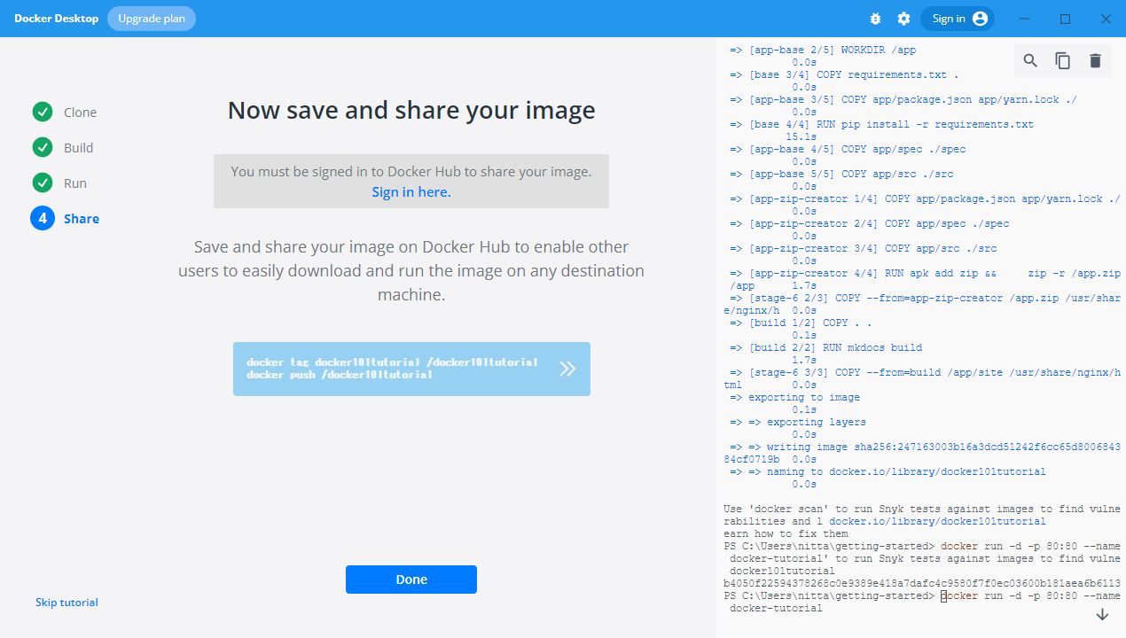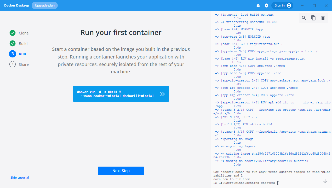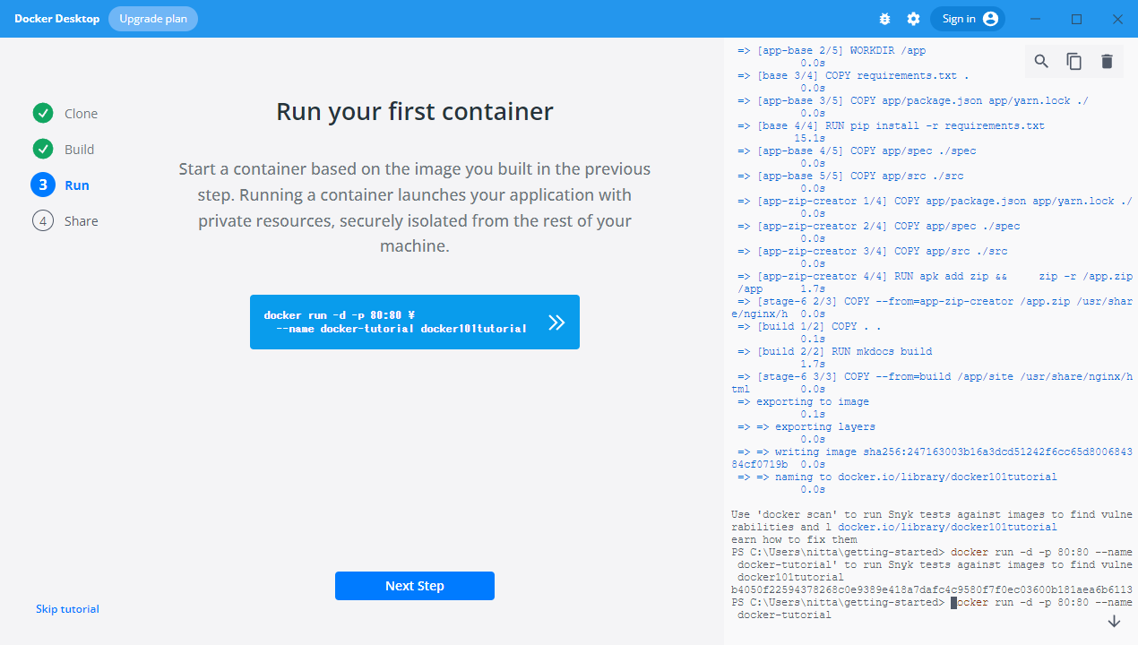 nitta@galleria:~$ docker --version Docker version 20.10.17, build 100c701 nitta@galleria:~$ docker version Client: Docker Engine - Community Cloud integration: v1.0.29 Version: 20.10.17 API version: 1.41 Go version: go1.17.11 Git commit: 100c701 Built: Mon Jun 6 23:03:17 2022 OS/Arch: linux/amd64 Context: default Experimental: true Server: Docker Desktop Engine: Version: 20.10.17 API version: 1.41 (minimum version 1.12) Go version: go1.17.11 Git commit: a89b842 Built: Mon Jun 6 23:01:23 2022 OS/Arch: linux/amd64 Experimental: false containerd: Version: 1.6.8 GitCommit: 9cd3357b7fd7218e4aec3eae239db1f68a5a6ec6 runc: Version: 1.1.4 GitCommit: v1.1.4-0-g5fd4c4d docker-init: Version: 0.19.0 GitCommit: de40ad0 nitta@galleria:~$ docker --version Docker version 20.10.17, build 100c701 nitta@galleria:~$ docker version Client: Docker Engine - Community Cloud integration: v1.0.29 Version: 20.10.17 API version: 1.41 Go version: go1.17.11 Git commit: 100c701 Built: Mon Jun 6 23:03:17 2022 OS/Arch: linux/amd64 Context: default Experimental: true Server: Docker Desktop Engine: Version: 20.10.17 API version: 1.41 (minimum version 1.12) Go version: go1.17.11 Git commit: a89b842 Built: Mon Jun 6 23:01:23 2022 OS/Arch: linux/amd64 Experimental: false containerd: Version: 1.6.8 GitCommit: 9cd3357b7fd7218e4aec3eae239db1f68a5a6ec6 runc: Version: 1.1.4 GitCommit: v1.1.4-0-g5fd4c4d docker-init: Version: 0.19.0 GitCommit: de40ad0 nitta@galleria:~$ docker ps CONTAINER ID IMAGE COMMAND CREATED STATUS PORTS NAMES 22d367464908 nvcr.io/nvidia/tensorflow:21.08-tf2-py3 "/usr/local/bin/nvid…" 29 minutes ago Up 26 minutes 6006/tcp, 6064/tcp, 0.0.0.0:8888->8888/tcp eager_northcutt