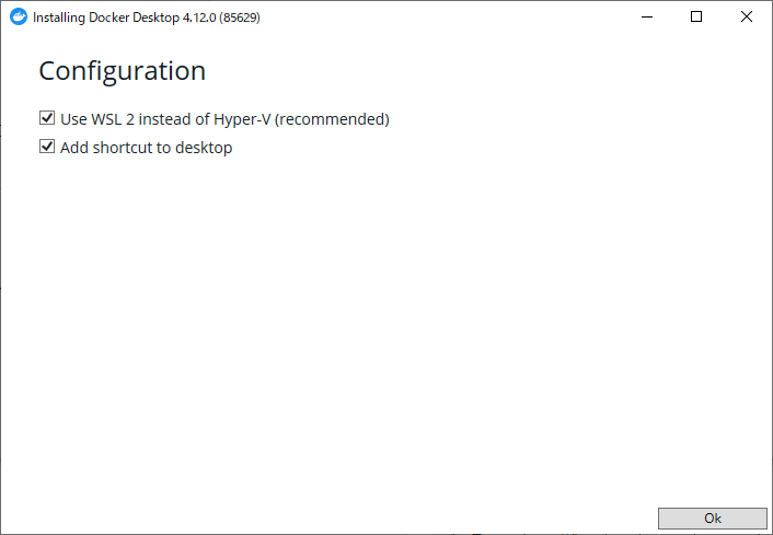 (x) Use WSL 2 instead of Hyper-V (recommended) <-- どちらも選択する