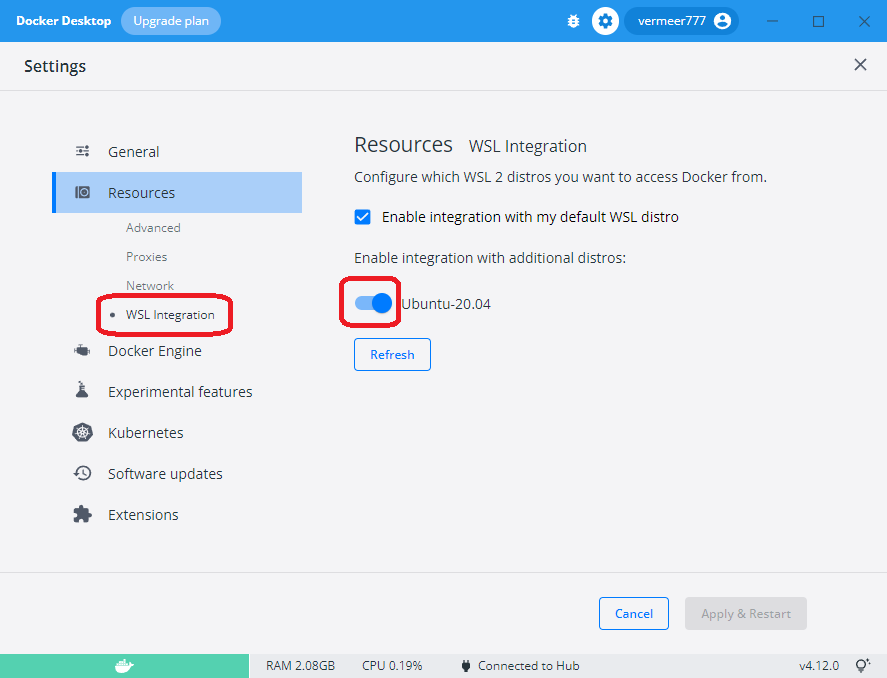 C:\Users\nitta> wsl -l -v NAME STATE VERSION * Ubuntu-20.04 Stopped 2 docker-desktop-data Running 2 docker-desktop Running 2