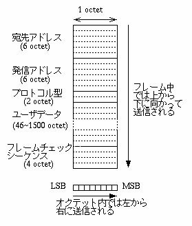 物理的に信号立ち上がり時は不安定なので、データを送出する前に チャネルを安定し同期をとる仕事が必要になります。 送信側はデータ送出に先だって 8 octet のプリアンブルを送り出し ます。 受信側はプリアンブルの最後 2bit に1が連続することを利用して データの先頭を検出します。