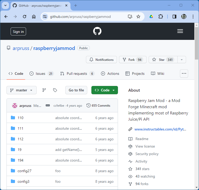 - "mods" フォルダをエクスプローラーで開いた状態にしておいて、"Raspberry Jam Mod" を導入する。