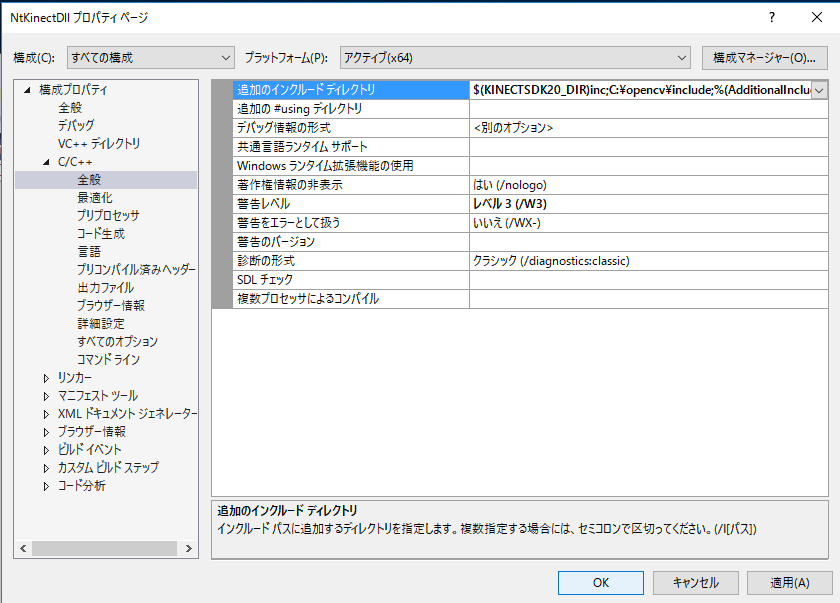 NtKinectを利用して OpenCV や Kinect V2 を使う DLL ファイルを作成してみましょう。 Visual Studio Proefssional 2017 では C++ で DLL を作成するプロジェクトのテンプレートが用意されています。