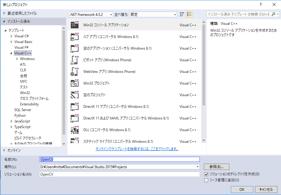 | 実行ファイルのパス | D:\opencv\bin | <-- 環境変数のPathに追加しておくこと |