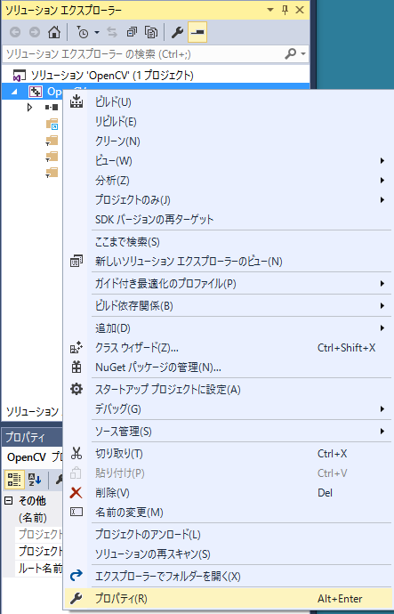 [注意] もしもReleaseモードでプログラムを実行する場合は、 opencv_world310d.lib ではなく、 opencv_worl310.lib をReleaseモードのプロパティで指定しなくてはいけません。
