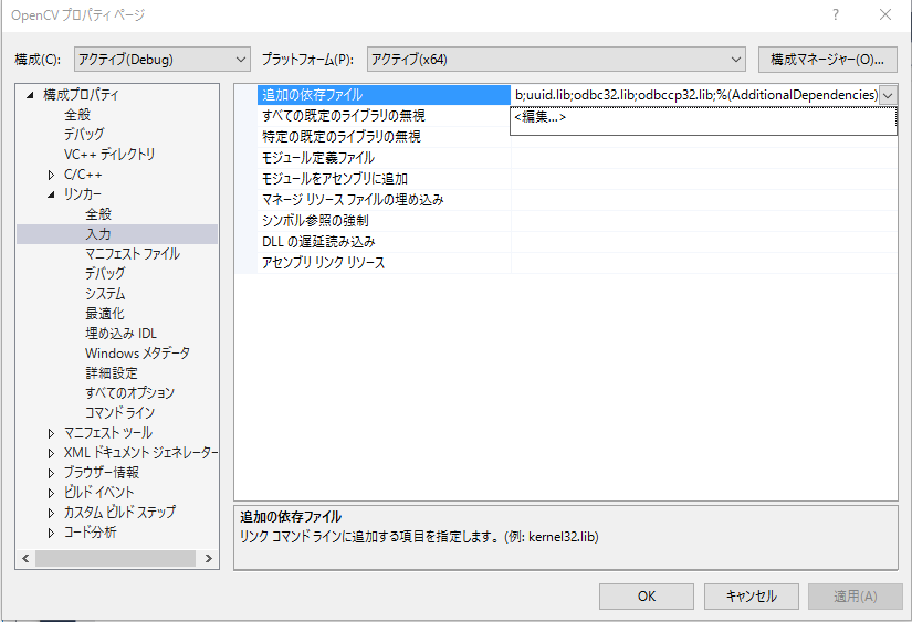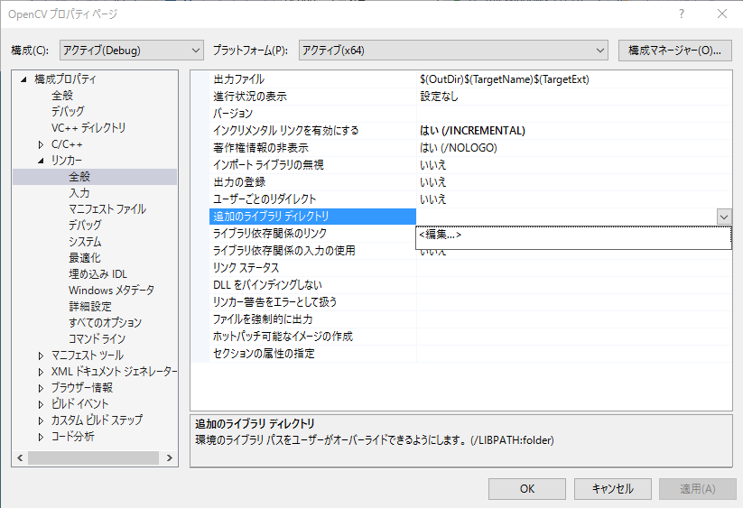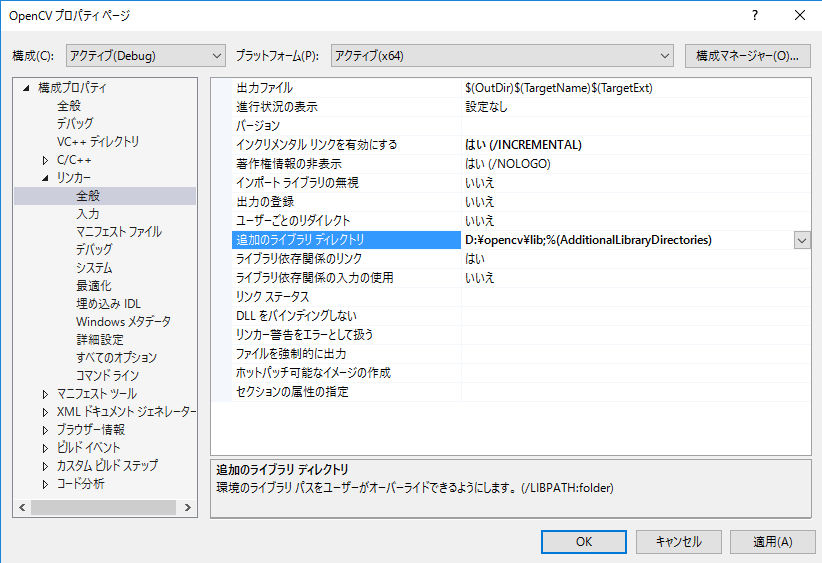 | ライブラリのパス | D:\opencv\lib |