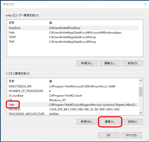 - Windowsの環境変数のPath変数にbinのPathを追加します。