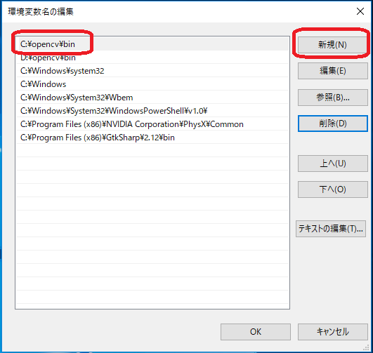 作業用フォルダ\opencv\build\x64\vc14\bin --> C:\opencv\bin