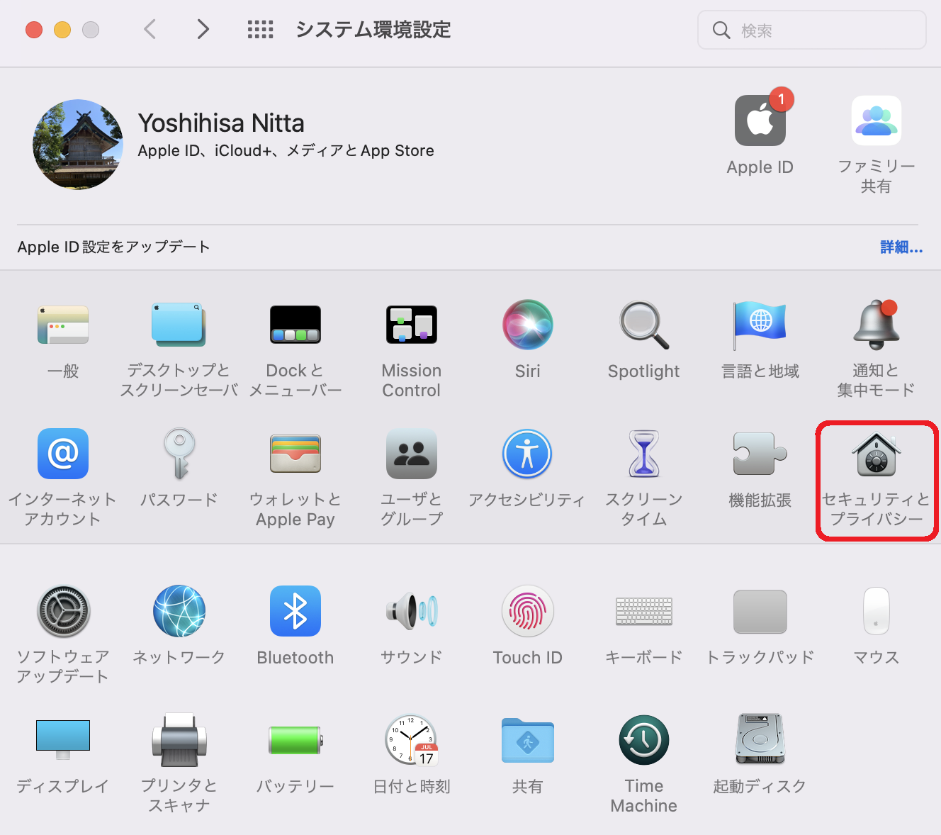 「システム環境」->「セキュリティとプライバシー」->「プライバシー」