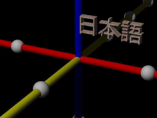 公式版のPOVRayでは、日本語TrueTypeフォントを利用した立体文字列オブジェクトを 作ることはできません。(改良版POVRayを利用すると可能です。)