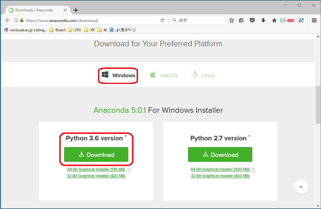 - Anaconda の公式サイトの