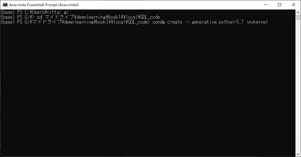 | Anaconda PowerShell 内で python仮想環境を作成する |