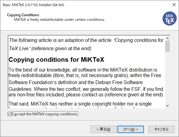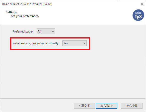 [重要]Install時のSettingsで "Install missing packages on-the-fly" 欄を "Yes" に変更すること。 デフォルトの "Ask me first" だと正しくPDFファイルが作成されない。