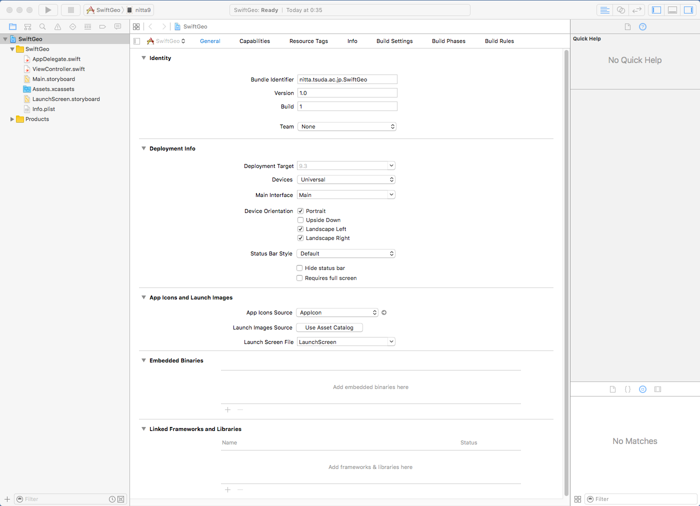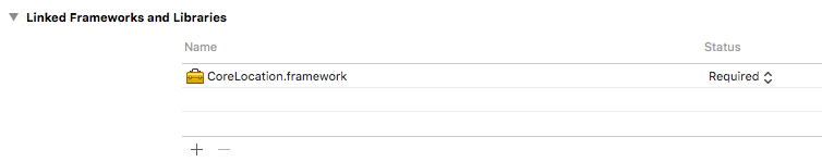 Key: NSLocationWhenInUseUsageDescription Type: String Value: 現在地の情報を利用します。を追加します。 ここに追加した説明は、「許可を求める確認ダイアログ」や 「設定 -> プライバシー -> 位置情報サービスのアプリ設定」 で表示されます。