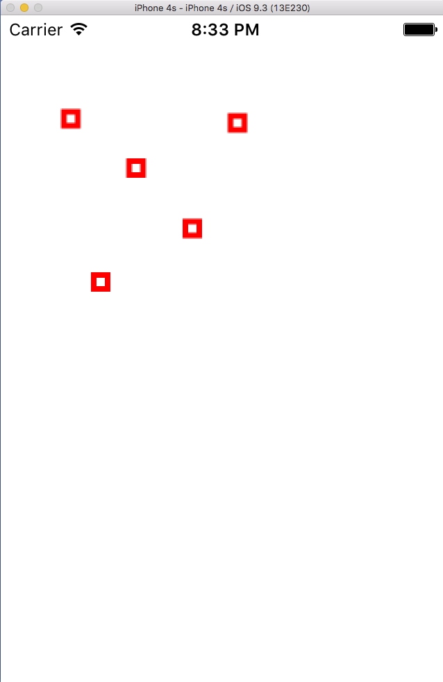 タップした場所(ImageViewの位置pos)に、10x10の赤い4角形を書くようにします。
