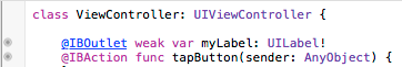 | ViewController.swift(myLabel変数の宣言は増えたが、自分で追加するコードなし) |