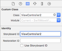 Storyboard上で UIViewController のインスタンスに storyboard id を設定しておきます。 その storyboard id で指定して UIViewController のインスタンスを生成し(instantiateViewControllerWithIdentifier)、 現在のUIViewController画面の前に表示します(presentViewController)。