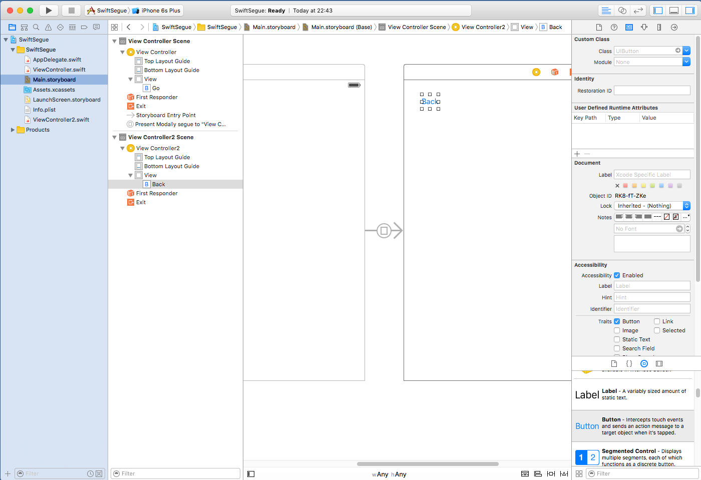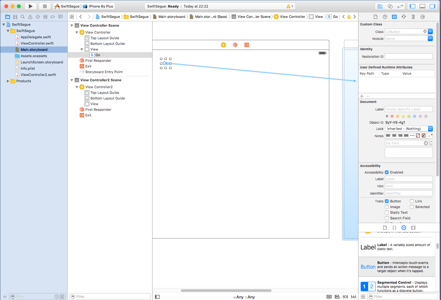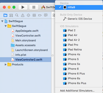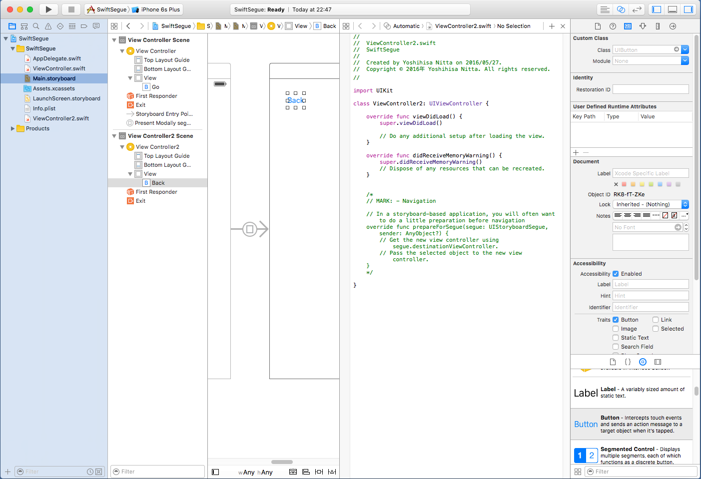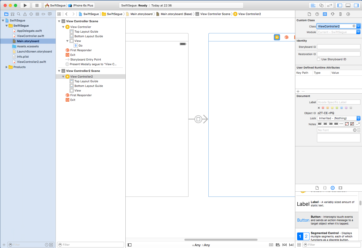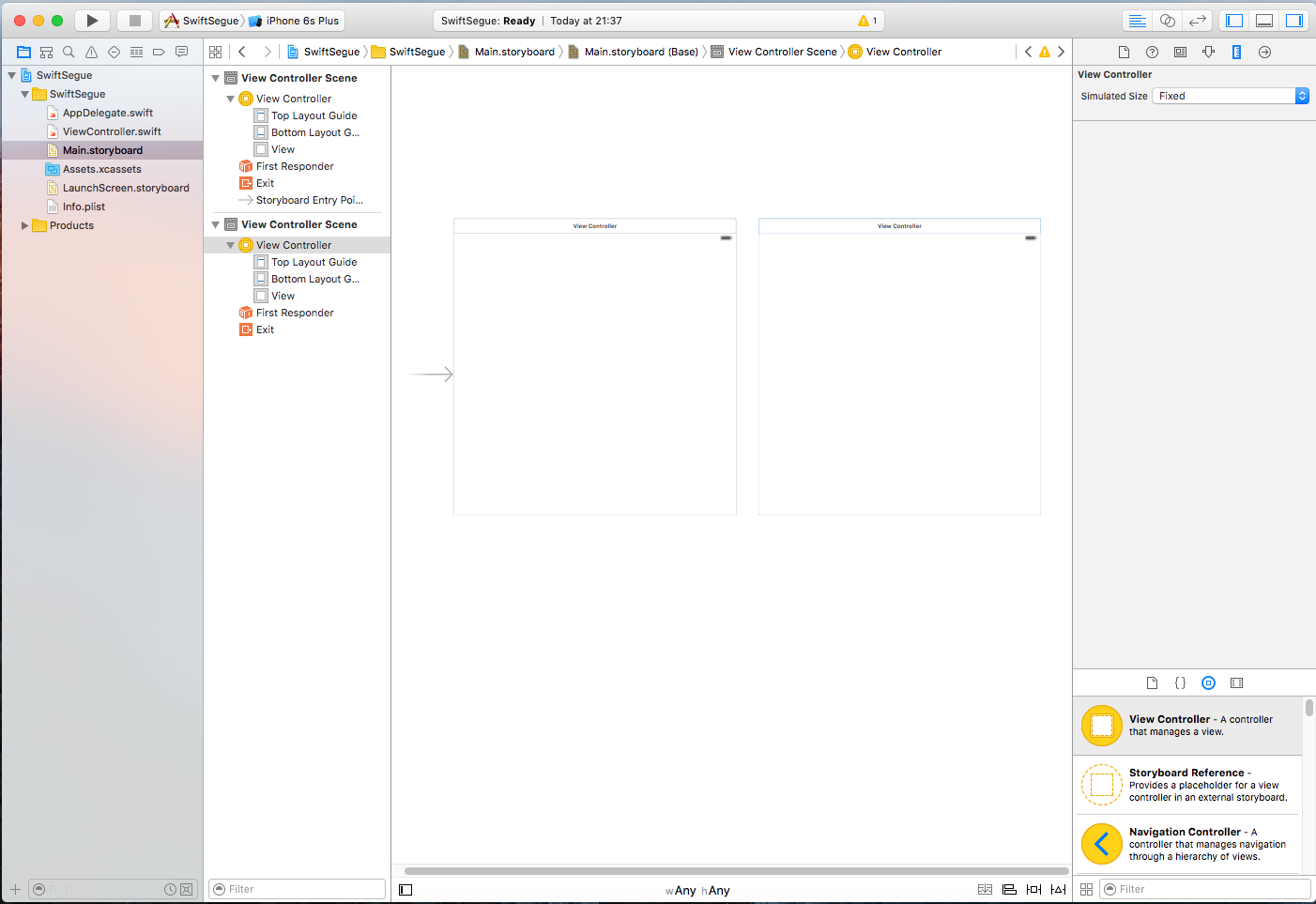 元のView Controller から新しい View Controller に向けて Segue を表す矢印が表示されて、 画面が遷移できることを表します。