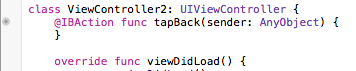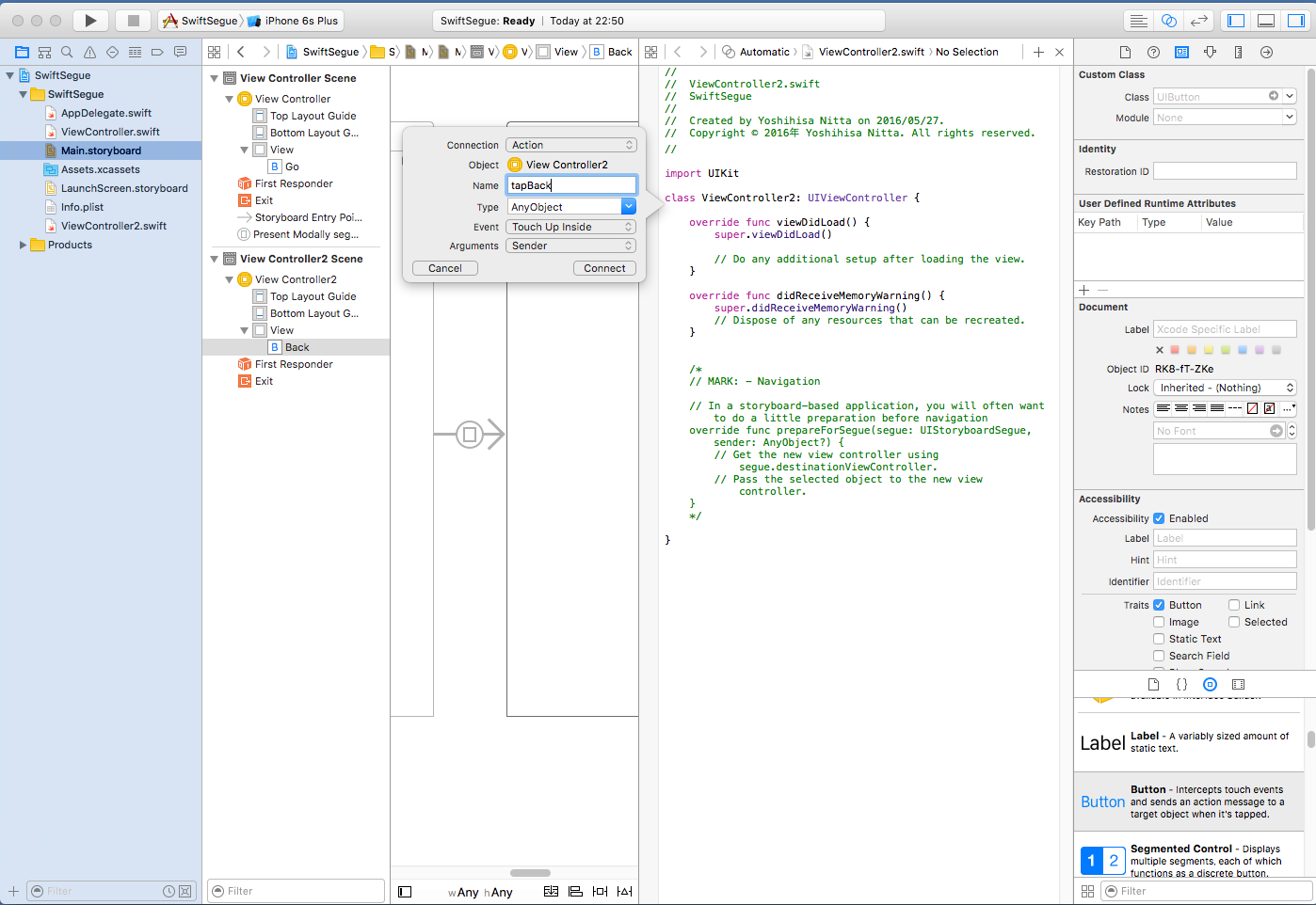 ConnectionはAction, Name は tapBack として Connect をクリックしましょう。