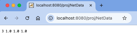 "http://localhost:8080" → "http://192.168.11.11:8080/proj/NetData?data=1"| ViewController.swift の変更点。IP Address 192.168.11.11 は各自の環境に合わせること。 |