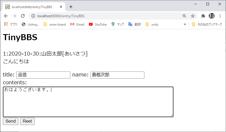[ブラウザでアクセスするURL] http://localhost:8080/entry/TinyBBS