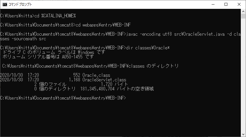 webapps 'entry' のパス: C:\Users\nitta\Documents\tomcat8\webapps\entry