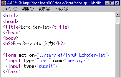 [ブラウザでアクセスするURL] http://localhost:8080/basic/input/echo.jsp