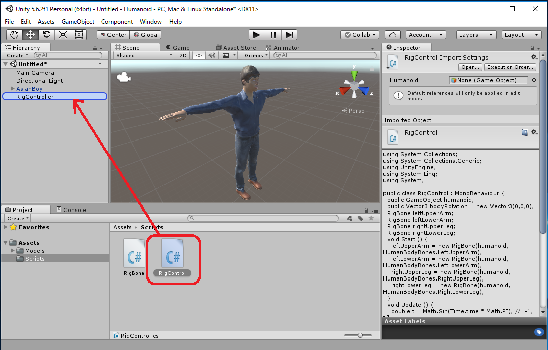 ここで説明した Unity のプロジェクトファイルはこちら Humanoid.zip。
