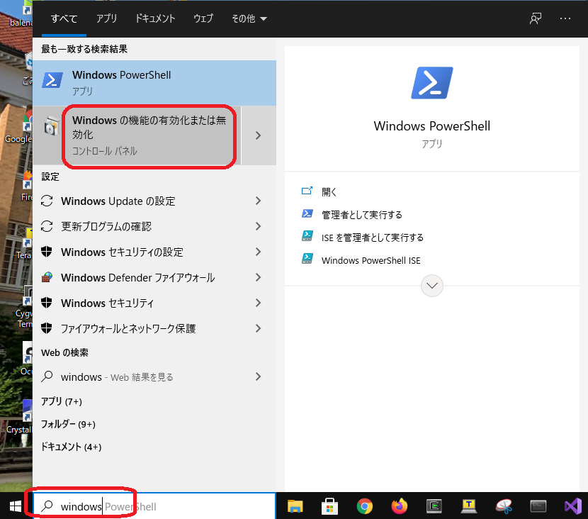 「Windowsの機能の有効化または無効化」を選択する。
