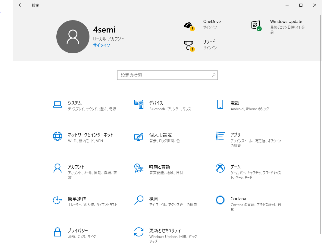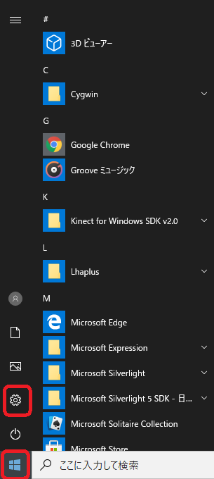 - 左下のスタートを右クリックし、「設定」を選択する。