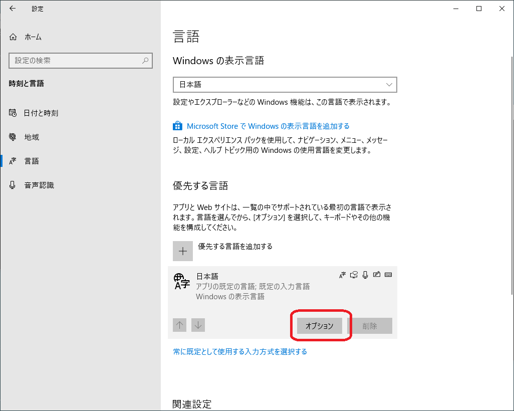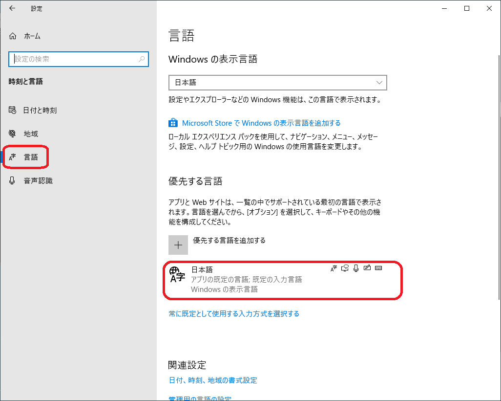 - 「言語」から「優先する言語」の「日本語」configjpを選択する。